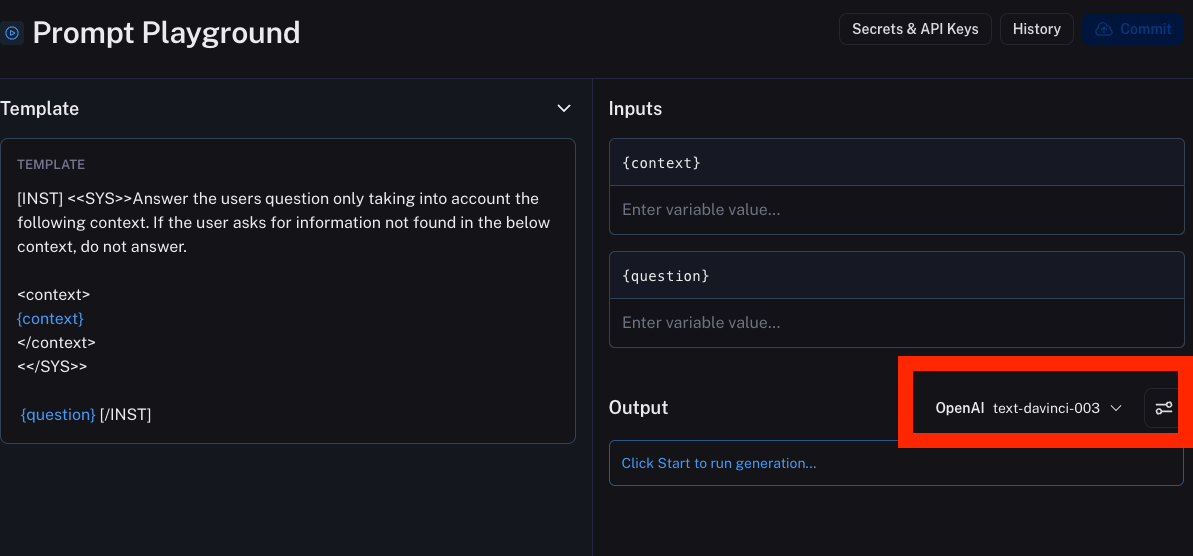 Secrets & API Keyssection in the playground