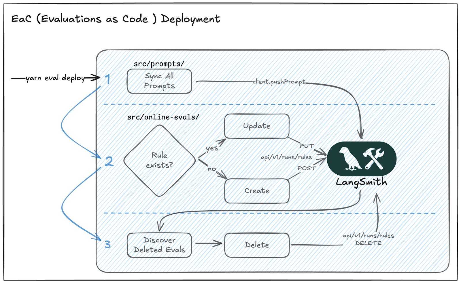 To close the loop, we built a custom CLI command, yarn eval deploy, that runs in our CI/CD pipeline. This ensures our repository remains the absolute Source of Truth for our evaluation infrastructure.