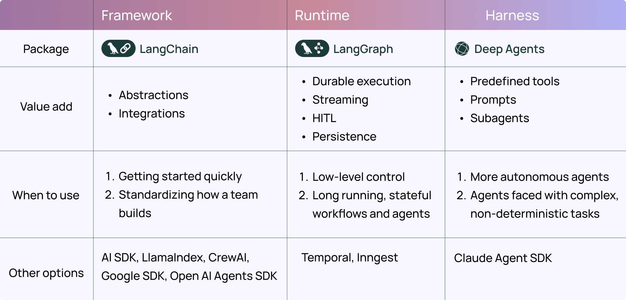 When to use deepagents vs LangChain, LangGraph