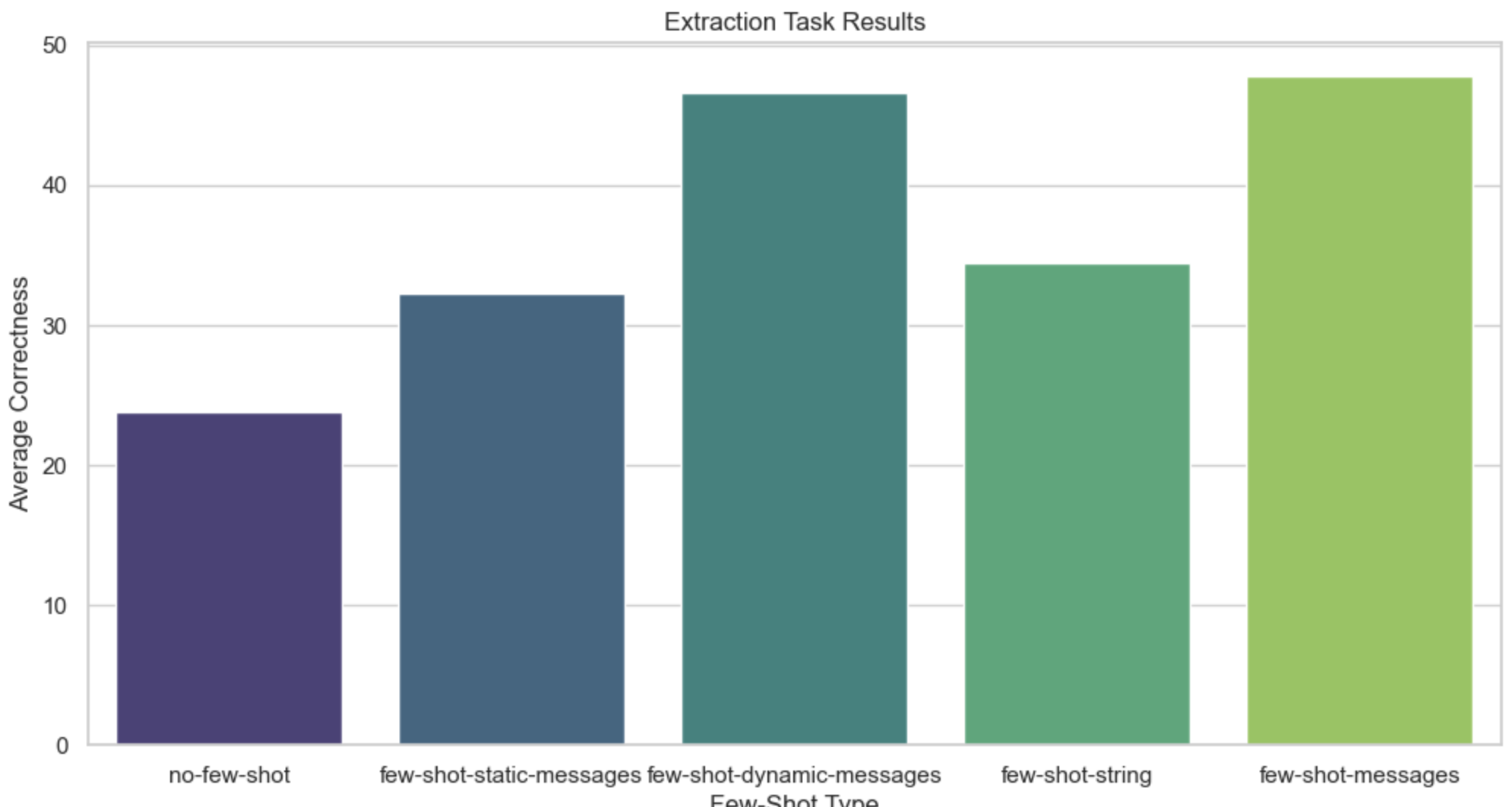 - Inserting 3 examples as messages usually has comparable performance to using all 9. This generally suggests that there may be diminishing returns to the number of few shot examples you choose to include.