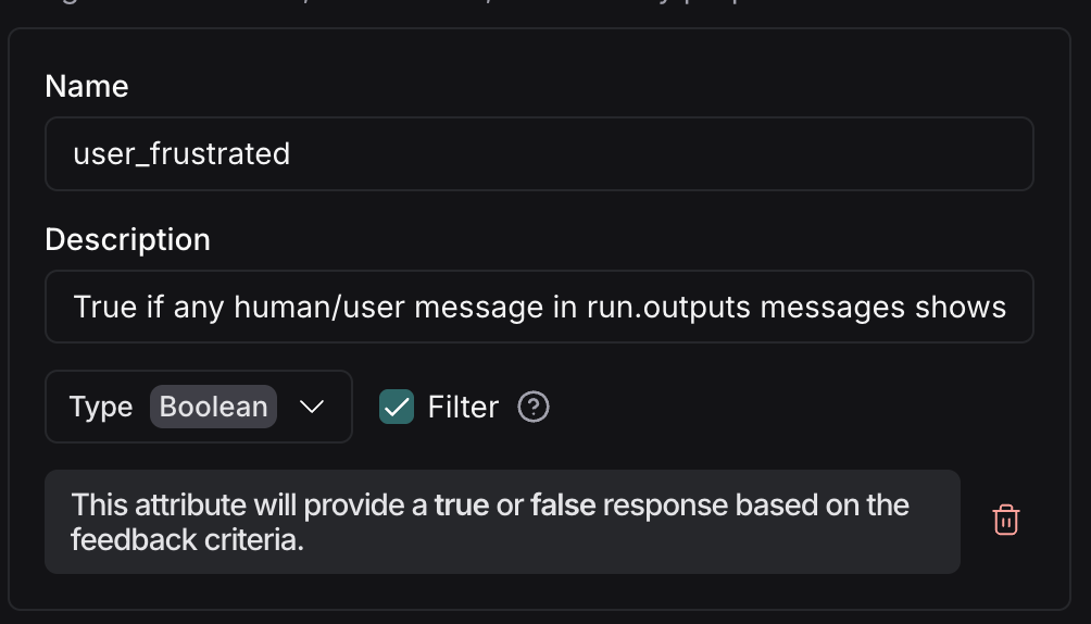 We have prebuilt prompts for these two use cases, but if you want to configure it to look for something else you can specify an arbitrary prompt. Because every agent is different - you might care about compliance, tone, accuracy, or domain-specific failures