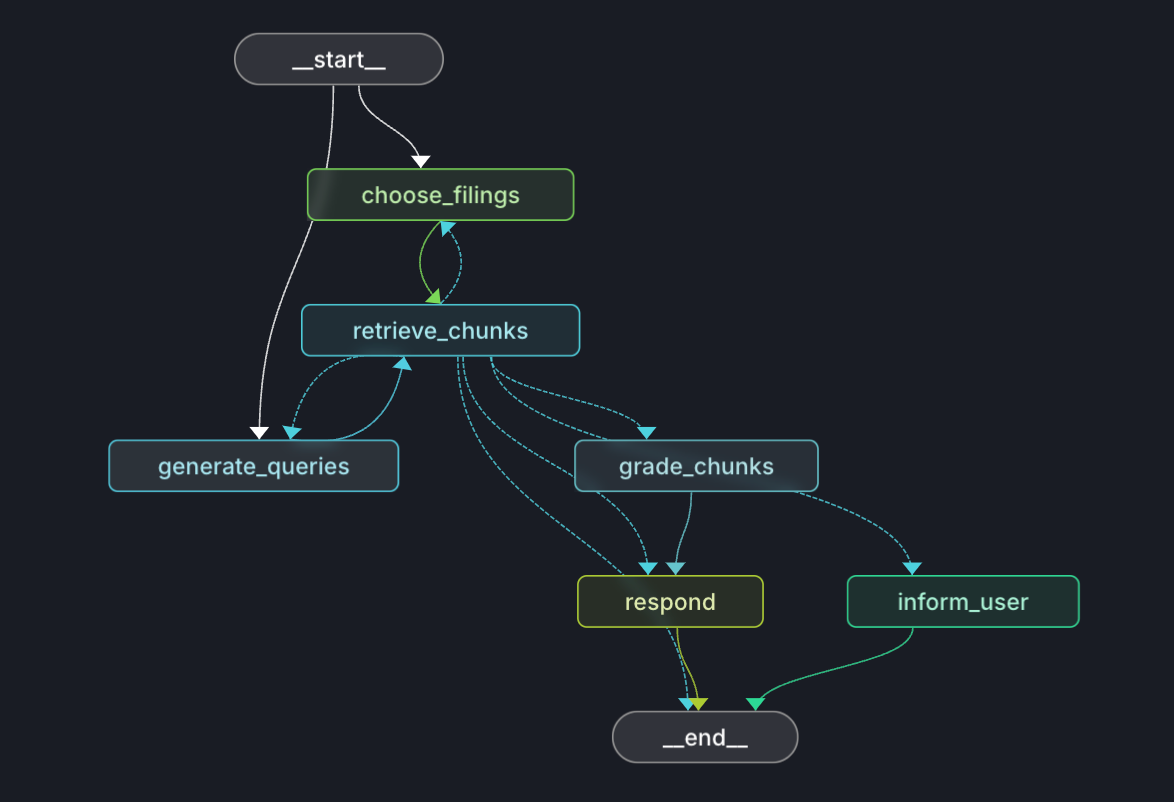 For example, when analyzing vast troves of regulatory filings, LangGraph’s parallel processing capabilities come into play. Multiple agents work simultaneously to execute ticker-specific vector store queries, retrieve relevant documents, and grade each document chunks. This approach not only minimizes latency but also eliminates the need to complicate the codebase with asynchronous functions.