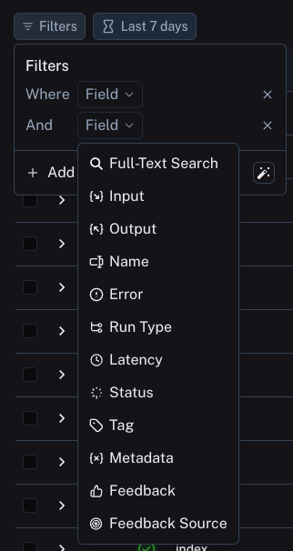 LangSmith's advanced search functionality makes it easy to identify anomalous behaviors. We can perform searches using a range of criteria, including: explicit user feedback, recent error incidents, response time delays, or negative sentiment. LangSmith also allows us to attach additional metadata to each trace to further extend its search capabilities.