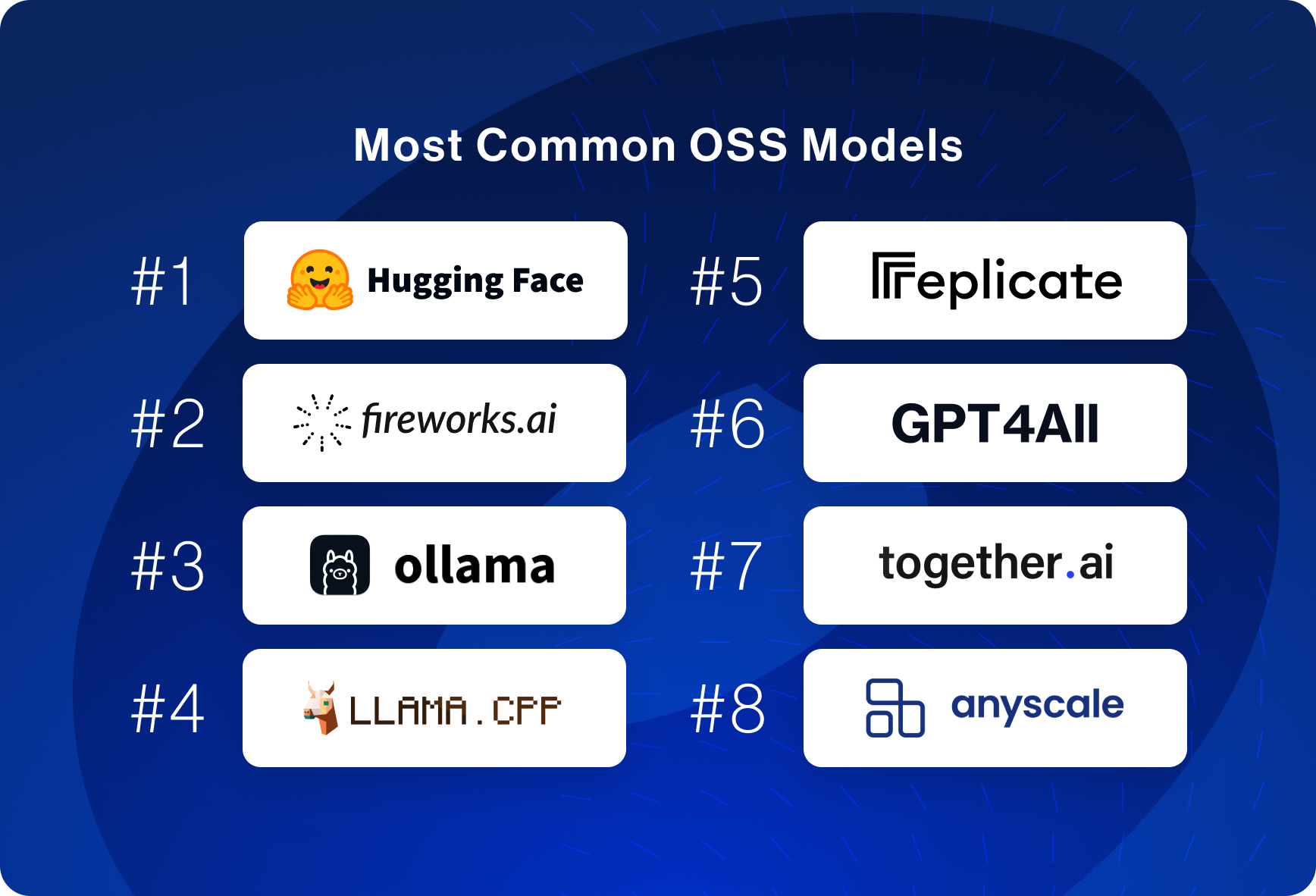 On the open source model side, we see Hugging Face (4th), Fireworks AI (6th), and Ollama (7th) emerge as the main ways users interact with those models.