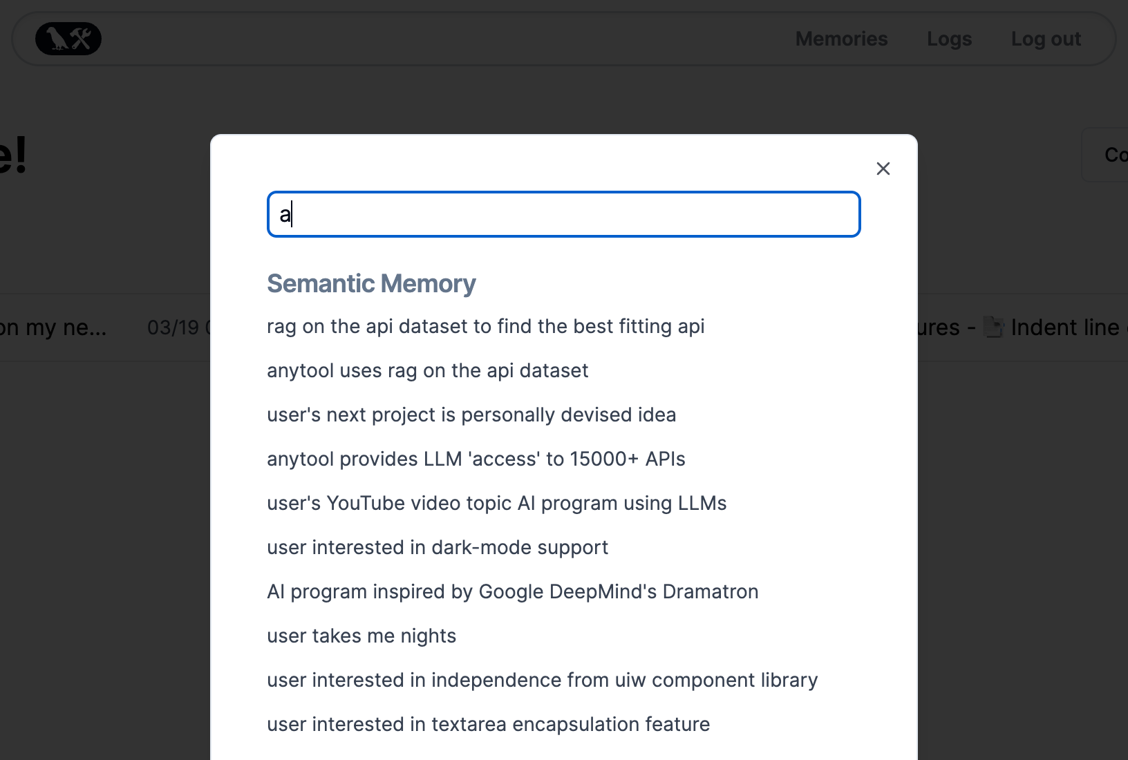 In this post we'll talk a bit about prior academic work in memory, other companies doing interesting things and why we chose a journaling app to focus on. We'll then deep dive into the journaling app, walking through its functionality. If you are interested in exploring memory with us, please reach out here.