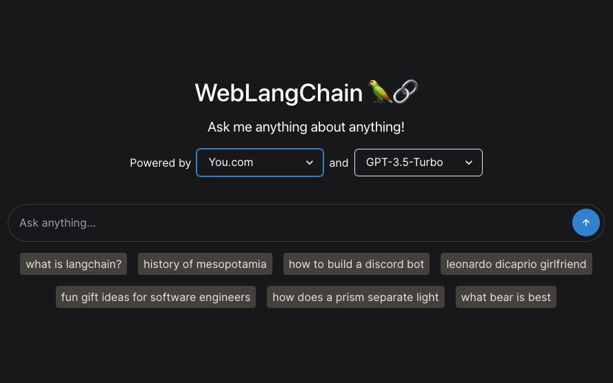 The screenshot below is from a playground for WebLangChain, which you can access here.