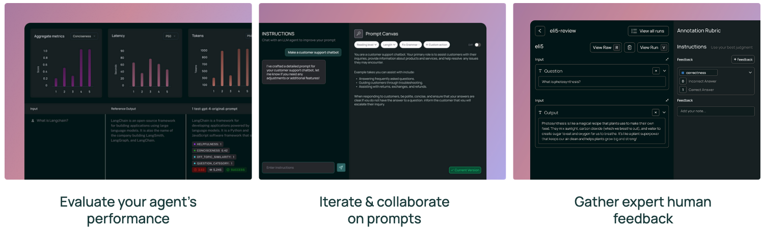 LangSmith provides enterprise teams with a unified platform to debug, test, deploy, and monitor AI applications. Its core capabilities span observability, evaluation, prompt engineering, and deployment: