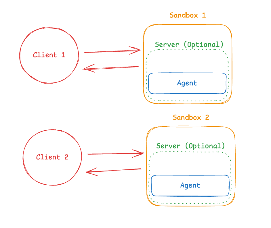 Then run it inside the sandbox. A complete implementation requires additional infrastructure to handle communication between your application and the agent inside the sandbox (WebSocket or HTTP server, session management, error handling). This is beyond the scope of this post, but we will have some follow up posts diving into this in more detail.