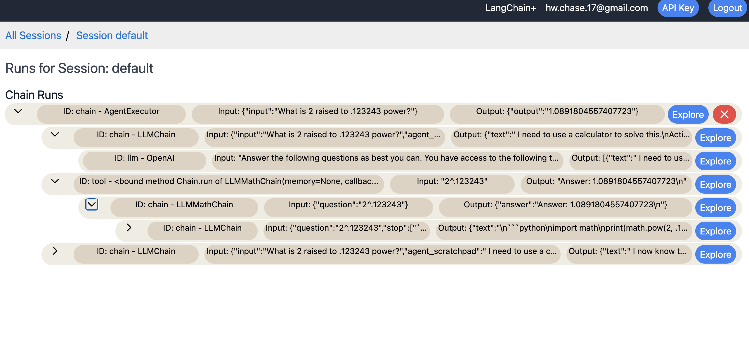 Each step of a chain or agent might also involve nesting — for example, an agent might invoke a tool, which uses an LLMMathChain, which uses an LLMChain, which then invokes an LLM. If you notice strange or incorrect output from a top-level agent run, it is difficult to determine exactly where in the execution it was introduced.