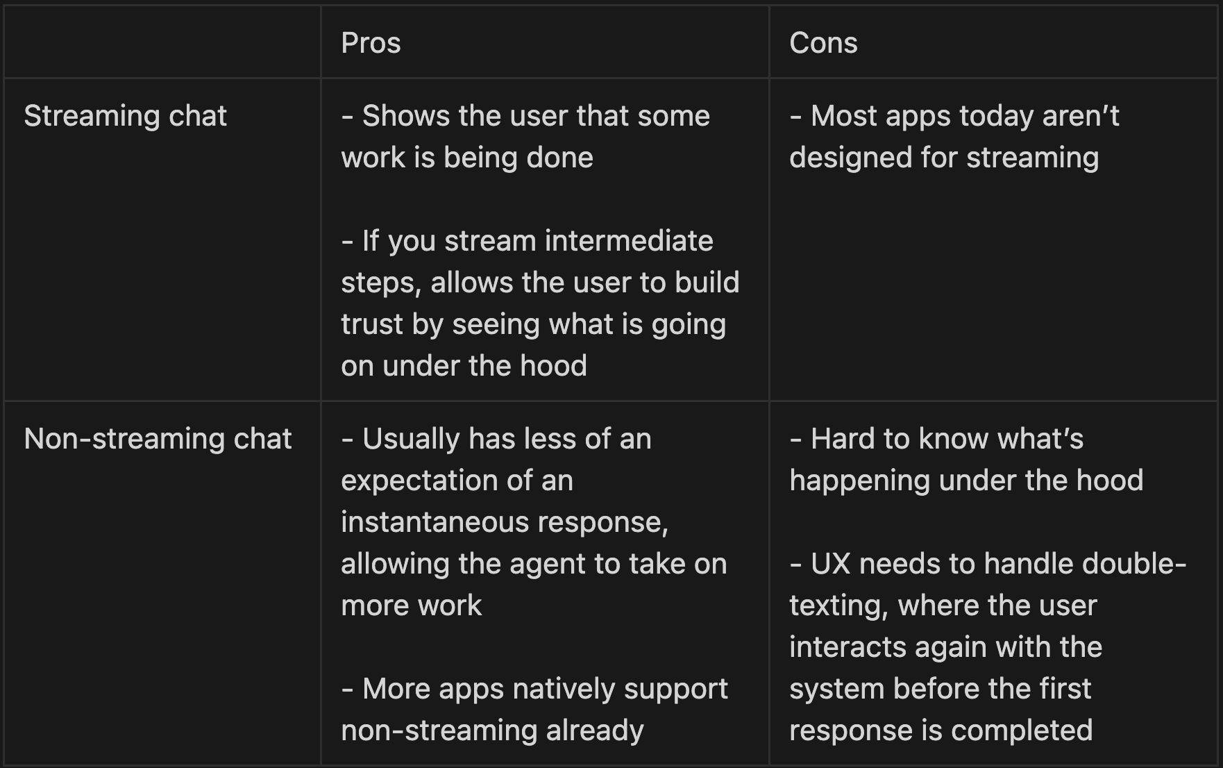 Pros/Cons of streaming vs. non-streaming chat