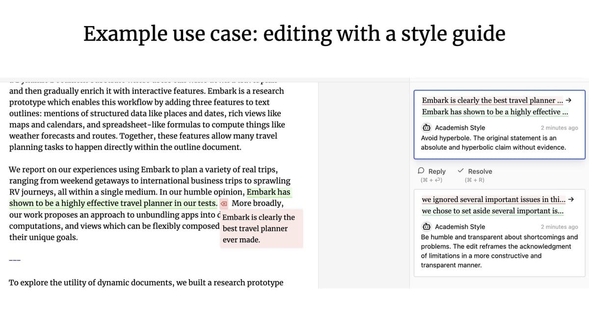 A lesser explored UX: what happens when agents and humans are working together? Think Google Docs, where you can collaborate with teammates on writing or editing documents - but instead, one of your collaborators is an agent.